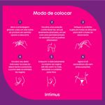 Lavar bem as mãos antes e após o manuseio. Inserir o absorvente interno conforme as instruções da embalagem. Trocar regularmente e não ultrapassar o tempo máximo recomendado de uso.