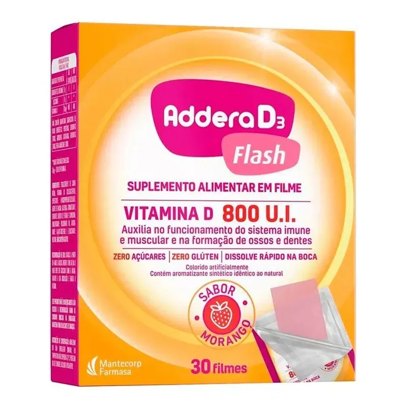 Addera D3 Flash Morango 800ui 30 Sachês - PromoFarma