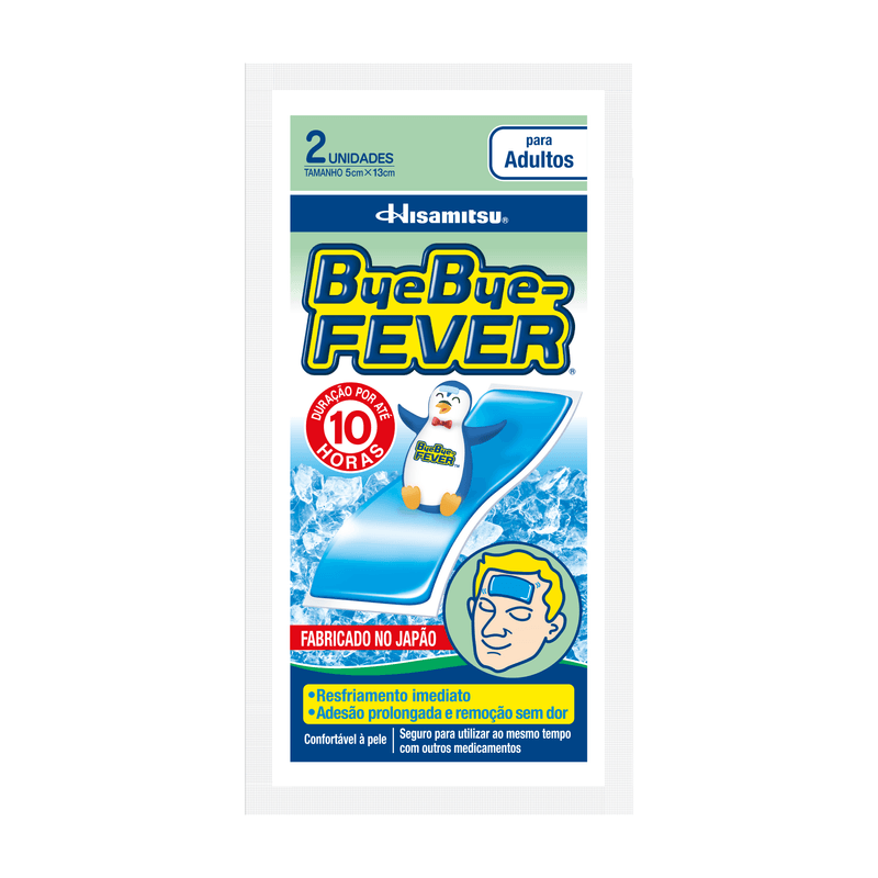 Indicado para auxiliar no combate à febre em adultos, Bye Bye Fever promove resfriamento local. Ele garante uma adesão prolongada (até 10 horas) e remoção sem dor, além de ser confortável à pele e seguro para utilizar junto a outros medicamentos.Benefícios