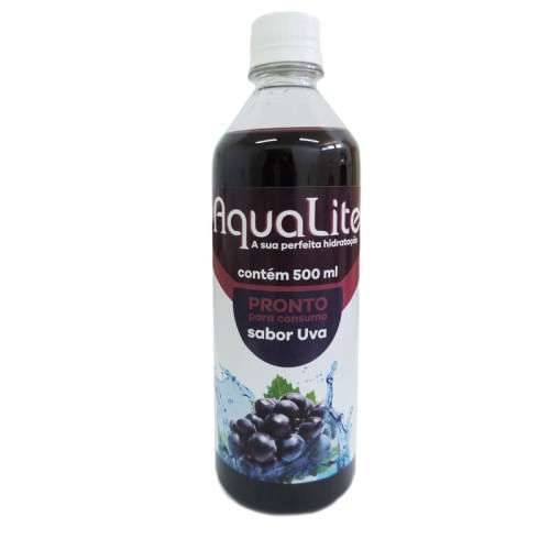 Aqualite é um suplemento hidroeletrolítico utilizado para hidratar o organismo. Frasco contendo 500ml nos sabores laranja, guaraná, uva e frutas vermelhas.