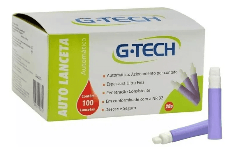 Auto Lanceta Automática G-tech 28g Roxo 100 Unidades