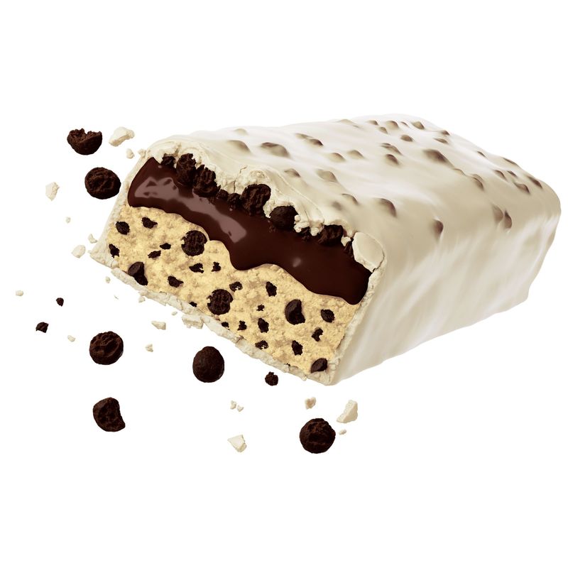 O que é? Barra de proteína sabor cookies & cream com 60g.