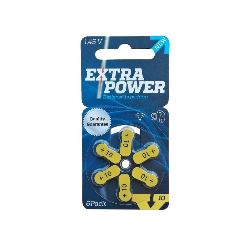 Pilhas da marca Extra Power para aparelhos auditivos, de ar-zinco (zinc-air).