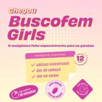 Buscofem® Girls está indicado no alívio temporário da febre e de dores de leve a moderada intensidade como: Dor de cabeça; Dor nas costas; Dor muscular; Enxaqueca; Cólica menstrual; De gripes e resfriados comuns; Dor de artrite; Dor de dente.Modo de uso