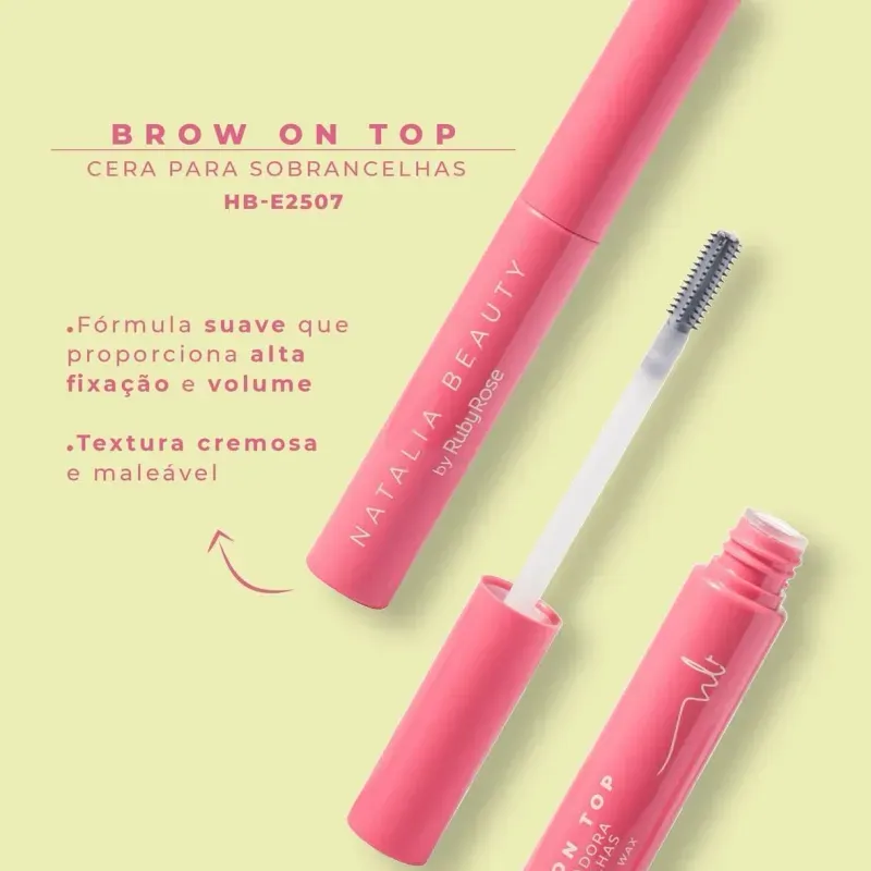 Cera para Sobrancelhas Brow On Top Natalia Beauty By Ruby Rose 4,7ml é um produto desenvolvido para modelar e fixar os fios, ajudando a manter as sobrancelhas alinhadas e com aparência mais definida ao longo do dia. Ideal para quem gosta de efeito penteado, com fios no lugar, ela auxilia a criar desde um acabamento natural até um visual mais marcado, no estilo sobrancelha laminada, dependendo da quantidade aplicada e do modo de pentear.