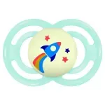 Indicada para a faixa etária 16M+, a chupeta conta com formato que busca se ajustar bem ao rostinho, com aberturas no escudo para ajudar na circulação de ar e botão de fácil pegada. A cor azul é uma opção clássica para o dia a dia, e a função que brilha no escuro facilita a rotina de sono sem necessidade de luz forte. Alguns modelos podem acompanhar estojo para transporte e higienização, mantendo a chupeta protegida quando não está em uso.
