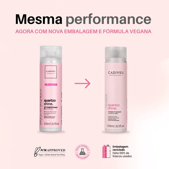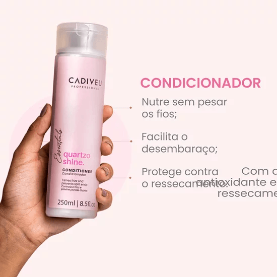 O Condicionador Cadiveu Quartzo Shine é um produto excepcional e de uso diário que foi desenvolvido para transformar seus cabelos em uma obra de arte. Sua fórmula é enriquecida com polímero protetor, que torna seus cabelos brilhantes, macios e com aspecto saudável. Além disso, promove nutrição suave para os fios e combate o ressecamento, mantendo a leveza e movimento.