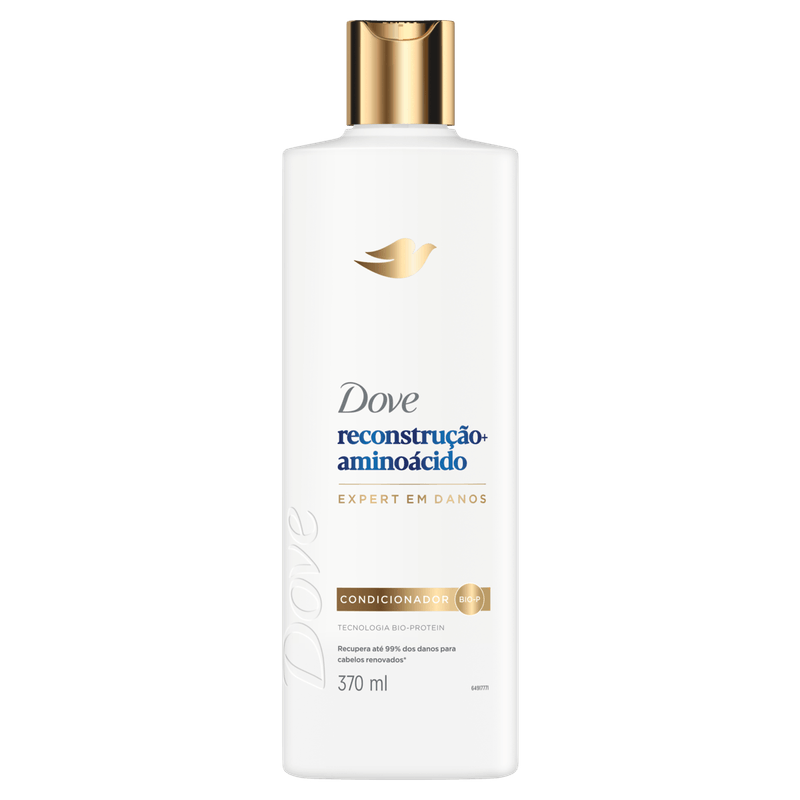O Condicionador Dove Reconstrução + Aminoácido faz parte da linha Damage Therapy e foi desenvolvido para reparar e fortalecer cabelos danificados desde a primeira aplicação.