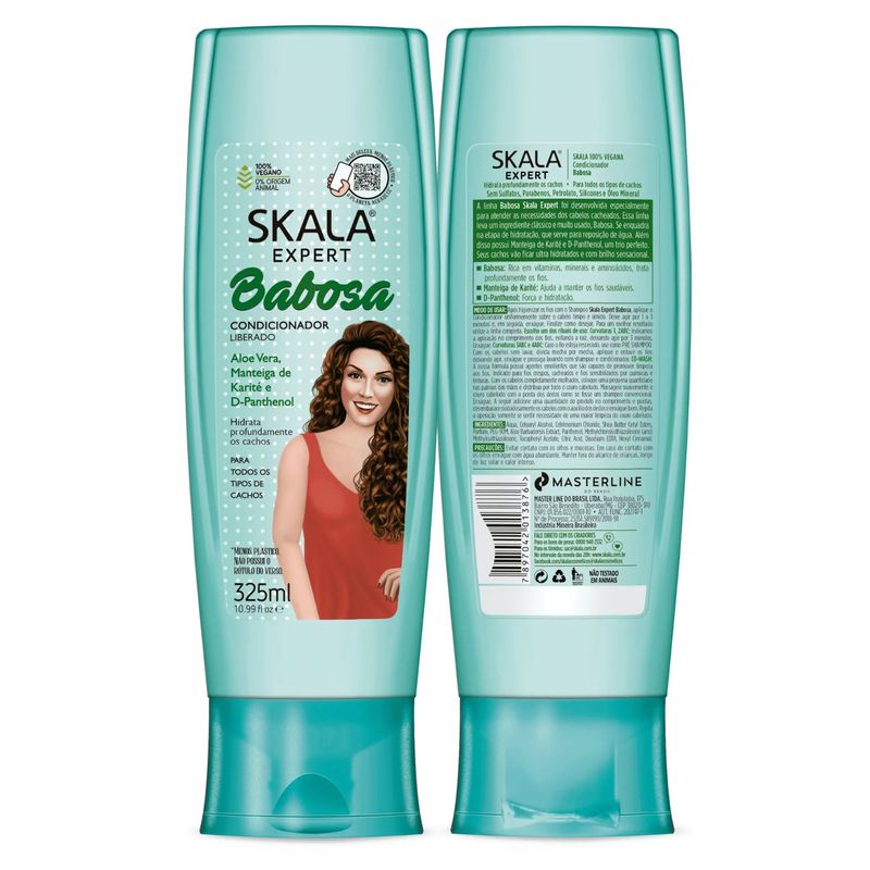 A linha Babosa Skala Expert foi desenvolvida especialmente para atender as necessidades dos cabelos cacheados. Essa linha leva um ingrediente clássico e muito usado, Babosa. Se enquadra na etapa de hidratação, que serve para reposição de água. Além disso possui Manteiga de Karité e D-Pantenol, um trio perfeito. Seus cachos vão ficar ultra hidratados e com brilho sensacional. Modo de Uso: