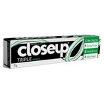 O creme dental Closeup Triple Menta possui uma fórmula com cálcio e flúor bioativo, que proporciona dentes fortes, mais brancos e hálito fresco. Sua fórmula promove uma limpeza profunda e eficaz, oferecendo um hálito fresco e duradouro.