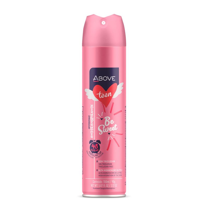 O Above Teen Be Sweet 150ml é um desodorante antitranspirante criado para adolescentes, oferecendo proteção eficaz, fragrância delicada e fórmula suave que mantém a pele fresca, hidratada e sem irritações ao longo do dia.Benefícios