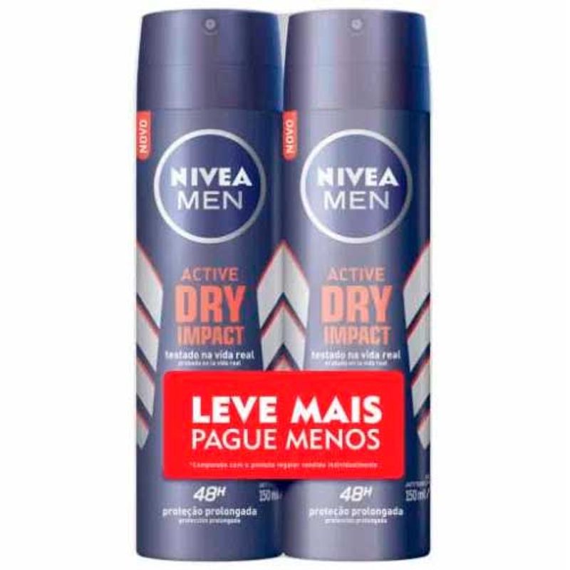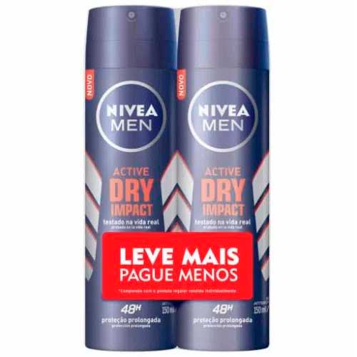 O Desodorante Dry Impact da linha Nivea For Men oferece proteção antitranspirante eficaz, garantindo sensação de pele seca. Apresenta fórmula desenvolvida com minerais ativos que contêm alto poder de absorção e ajudam a regular a transpiração. Protege por 48h, combatendo a transpiração excessiva. Além disso, conta com o dobro de agentes antitranspirantes e minerais, promovendo proteção extrasseca.