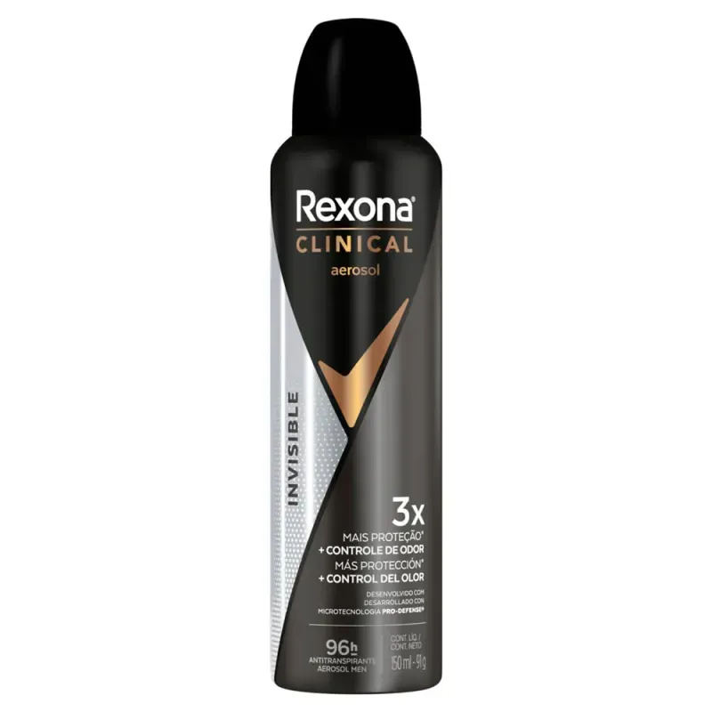 O Desodorante Rexona Clinical Invisible 96h Aerosol 150ml foi desenvolvido para oferecer proteção máxima contra suor e odor, mesmo em situações de alta exigência. Sua tecnologia Clinical Strength garante até 96 horas de eficácia antitranspirante, enquanto a fórmula Invisible ajuda a evitar manchas brancas em roupas escuras e manchas amarelas em roupas claras. O aerosol proporciona aplicação uniforme, sensação de frescor imediato e proteção prolongada ao longo do dia. É ideal para quem busca segurança extrema, conforto e alta performance na rotina.