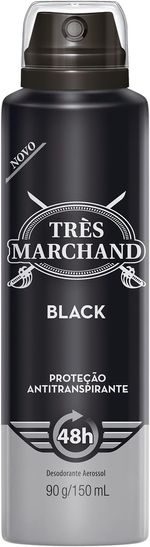 O Desodorante Aerossol Antitranspirante Très Marchand Masculino Black elimina as bactérias causadoras do mau odor, protegendo você por até 48 horas. Possui uma fragrância sensual, completamente inspirada na mais fina perfumaria, e oferece sensação de bem-estar que se prolonga para todas as horas do dia. Com o Desodorante Aerossol Antitranspirante Très Marchand Masculino Black, seu dia será muito mais interessante.