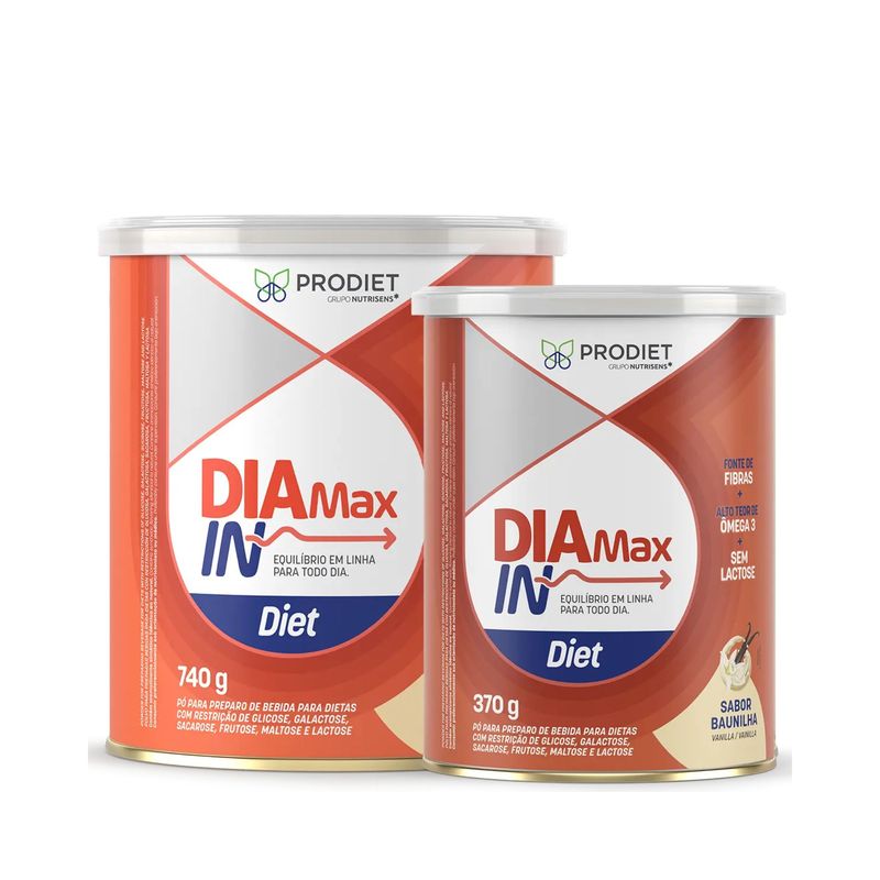 baixo índice glicêmico e combina proteínas de alto valor biológico, carboidratos de absorção lenta, gorduras boas e fibras solúveis, que auxiliam na saciedade e na manutenção dos níveis estáveis de glicose no sangue. Além disso, é enriquecido com vitaminas e minerais essenciais para o bom funcionamento do metabolismo. O Diamax In é indicado para o uso diário como complemento alimentar, podendo ser consumido entre as refeições ou conforme orientação médica ou nutricional.