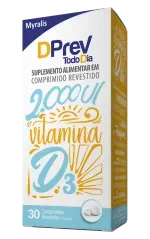 Dprev Todo Dia 2.000UI 30 Comprimidos Revestidos é um suplemento/medicamento à base de vitamina D3 (colecalciferol), indicado para suplementação diária quando há necessidade de complementar a ingestão de vitamina D. A vitamina D é essencial para o organismo, pois participa da absorção de cálcio e fósforo, contribuindo para a formação e manutenção de ossos e dentes, além de atuar no funcionamento muscular e no suporte ao sistema imunológico. A dose de 2.000UI é comumente utilizada em rotinas de manutenção e reposição, mas a necessidade real deve ser definida conforme avaliação clínica e, quando indicado, por exames laboratoriais.