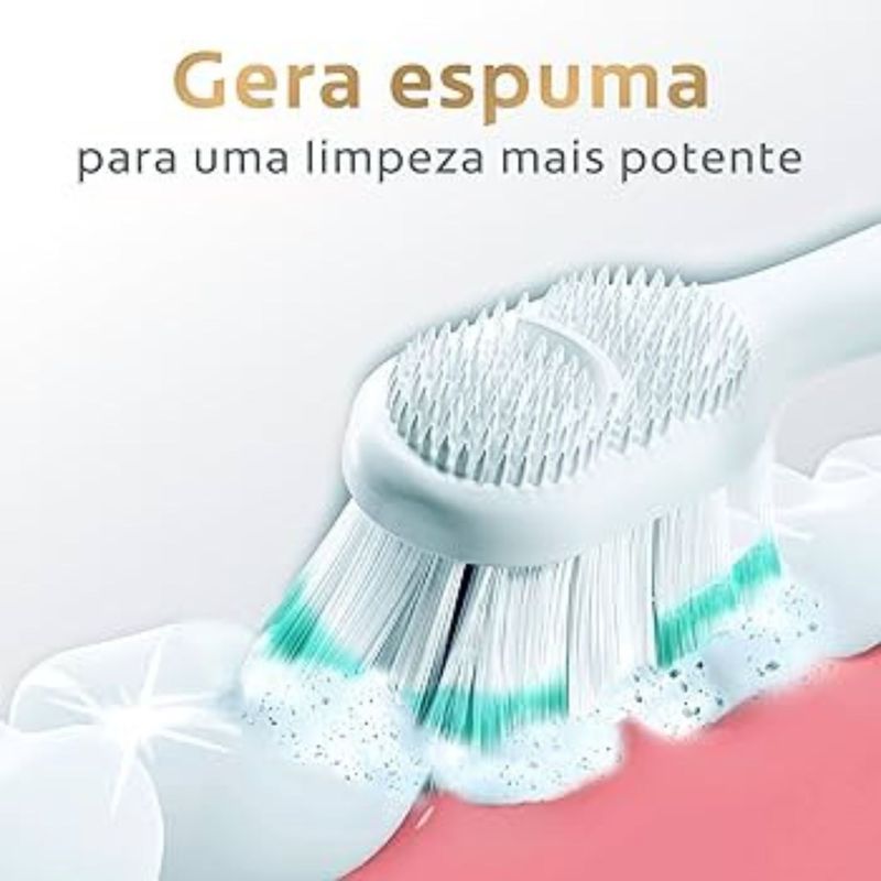 Colgate Total Limpeza Espumosa é uma escova de dente macia desenvolvida com tecnologia de alta densidade e mais de 5 mil cerdas. Ela conta com cerdas multiníveis para limpar o contorno dos dentes; cerdas internas arredondadas com acabamento plano que ajudam a limpar a face do dente e a superfície de mastigação; cerdas externas ultrafinas para limpeza suave para as áreas mais difíceis entre o dente e a linha da gengiva; e limpador de língua para remover as bactérias causadoras de odor.