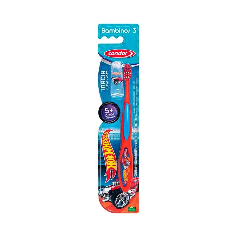 Escova Dental Infantil Condor Bambinos 3 Hot Wheels 1 Unidade + Capa Protetora
