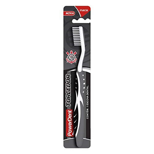 A escova dental Powerdent Torcedor Corinthians, acima de 5 anos possui cerdas macias e arredondadas que não machucam a gengiva e sua cabeça arredondada facilita a escovação em áreas de difícil acesso com conforto.