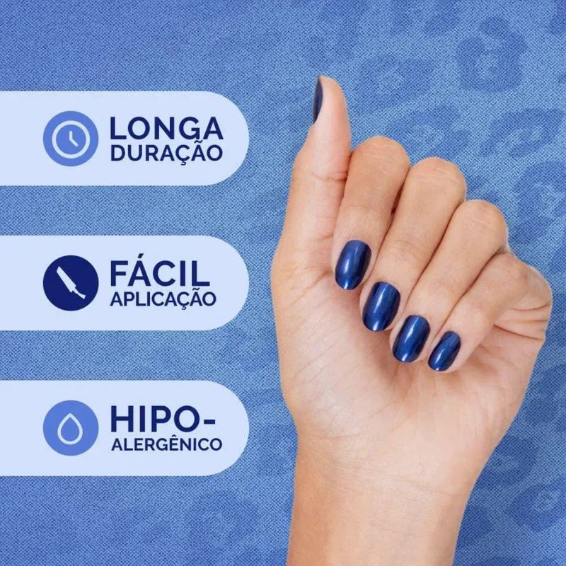 Quem deve usar? Pessoas que buscam unhas modernas, marcantes e com brilho metálico sofisticado.