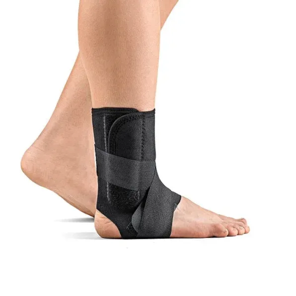 Compressão na região do tornozelo; Melhora a sensação de estabilidade da articulação; Talas laterais proporcionam mais segurança aos seus movimentos; Possui faixas elásticas que ampliam seu efeito; Ajuste conforme a sua necessidade; Retém o calor devido ao material em neoprene; Auxilia no alívio da dor.