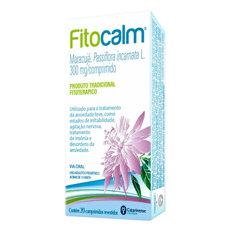 Fitocalm 300mg é um medicamento fitoterápico à base de extrato seco de Passiflora incarnata, planta popularmente conhecida como maracujá. É indicado para auxiliar no alívio de estados de ansiedade leve, agitação nervosa e dificuldade para dormir, proporcionando um efeito calmante de origem natural.Para que serve?