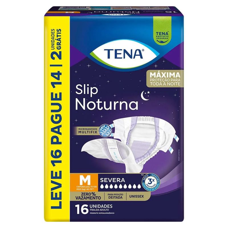 Tena Slip Noturna é indicada para quais situações?É indicada para incontinência urinária moderada a intensa e para quem precisa de proteção reforçada no período noturno.