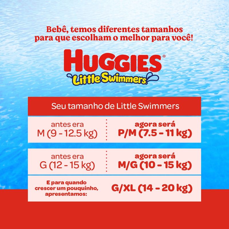Indicada para bebês que utilizam tamanho G ou XG, conforme peso indicado na embalagem. Desenvolvida para uso específico em ambientes aquáticos, não substitui a fralda convencional para uso diário. Deve ser utilizada apenas durante o período de contato com a água.