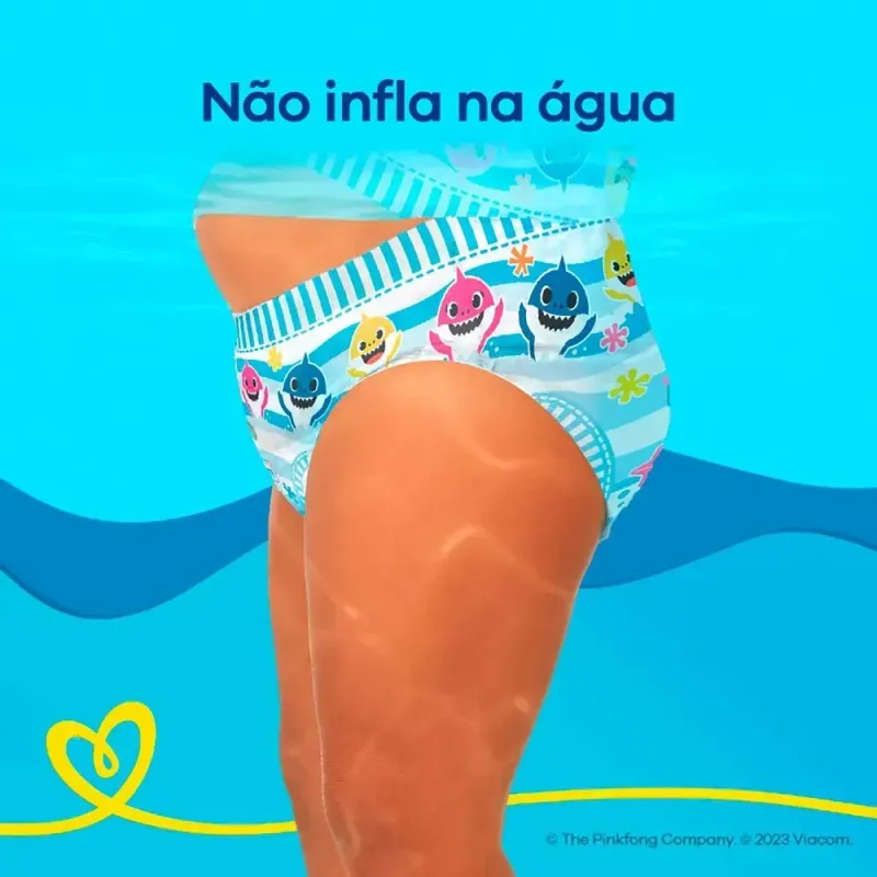 As fraldas de piscina descartáveis Pampers Splashers são feitas para diversão na piscina, praia, parque e mais. Não incha na água como fraldas comuns para um ajuste confortável mesmo molhada. Dupla barreira anti vazamento se encaixam na perninha para conter a sujeira.