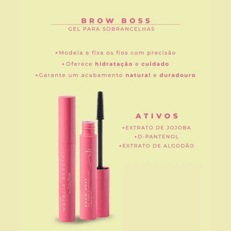 Gel para Sobrancelhas Brow Boss Natalia Beauty Ruby Rose 4ml é um gel desenvolvido para pentear, modelar e fixar os fios das sobrancelhas, ajudando a manter o formato alinhado e com acabamento mais definido ao longo do dia. É ideal para quem busca praticidade na rotina, seja para um visual natural com fios organizados ou para uma finalização mais marcada, com efeito penteado e sobrancelhas no lugar.