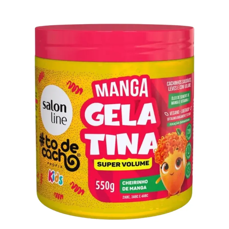 A Gelatina Salon Line Kids #TodeCacho Super Volume Manga 550g é um finalizador infantil desenvolvido especialmente para cuidar dos cabelos cacheados e crespos das crianças. Sua fórmula contém extrato natural de manga e ativos hidratantes que proporcionam definição, nutrição e muito volume saudável aos fios.Para que serve?