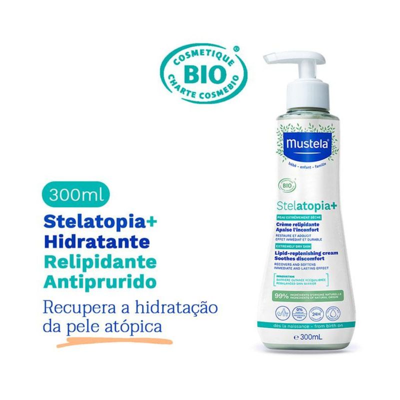 O Mustela Stelatopia+ Relipidante Antiprurido 300ml é um cuidado emoliente de uso diário, desenvolvido para hidratar intensamente e ajudar a aliviar a sensação de comichão típica das peles secas e extremamente secas, com tendência atópica. A fórmula relipidante atua no conforto imediato e contínuo, contribuindo para reforçar a barreira cutânea e reduzir a secura, com textura cremosa de rápida absorção, sem colar e sem deixar película oleosa. Adequado para bebés, crianças e adultos, pode ser utilizado em períodos de maior sensibilidade cutânea e em climas frios e secos.