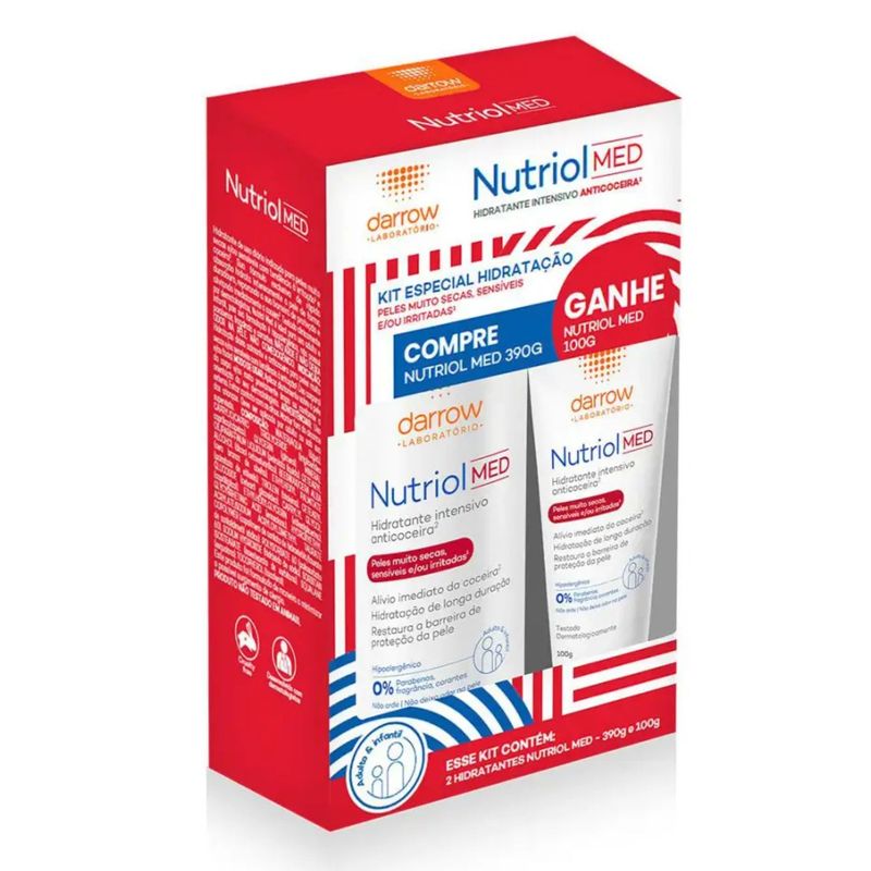 O kit é composto por duas embalagens de Loção Hidratante Darrow Nutriol Med, sendo uma de 390g e outra de 100g, oferecendo excelente custo-benefício e praticidade para uso em casa ou para levar na bolsa. A textura é leve, de fácil espalhabilidade e rápida absorção, sem deixar a pele pegajosa. Indicado para adultos e crianças, o produto é dermatologicamente testado e adequado para peles sensíveis, podendo ser utilizado diariamente conforme a necessidade da pele.