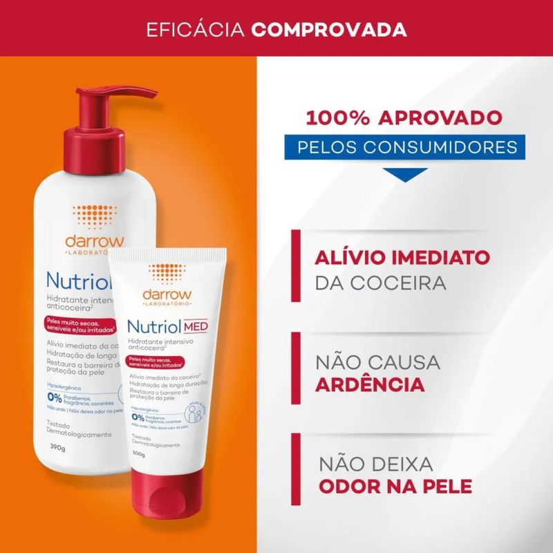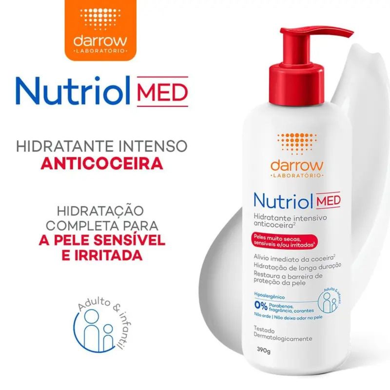 O Kit Loção Hidratante Darrow Nutriol Med 390g + 100g é indicado para o cuidado diário da pele seca a extrasseca, promovendo hidratação intensa e prolongada. Desenvolvida com tecnologia dermatológica, a loção Nutriol Med ajuda a restaurar a barreira cutânea, reduzindo o ressecamento, a aspereza e a sensação de repuxamento da pele. Sua fórmula atua profundamente, proporcionando conforto imediato e mantendo a pele mais macia, suave e protegida ao longo do dia, sendo ideal para uso contínuo em diferentes áreas do corpo.