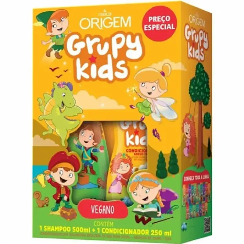 O que é? Kit infantil com shampoo suave e condicionador para ajudar a reduzir o frizz e facilitar o desembaraço.