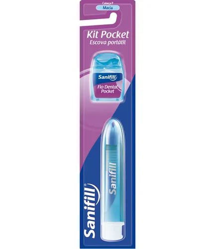 A Escova de Dente Sanifill Pocket é ideal para ter sempre à mão em viagens ou compromissos. Com tampa que vira cabo, é portátil, leve e compacta, cabe facilmente em necessaires e bolsas. Suas cerdas macias possuem acabamento arredondado para uma limpeza eficiente sem machucar, enquanto o higienizador de língua auxilia na remoção dos resíduos diminuindo a proliferação das bactérias. Uso adulto. Acompanha Fio Dental de 25m.