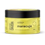 O que é? Creme esfoliante físico para rosto e corpo com fragrância de maracujá.