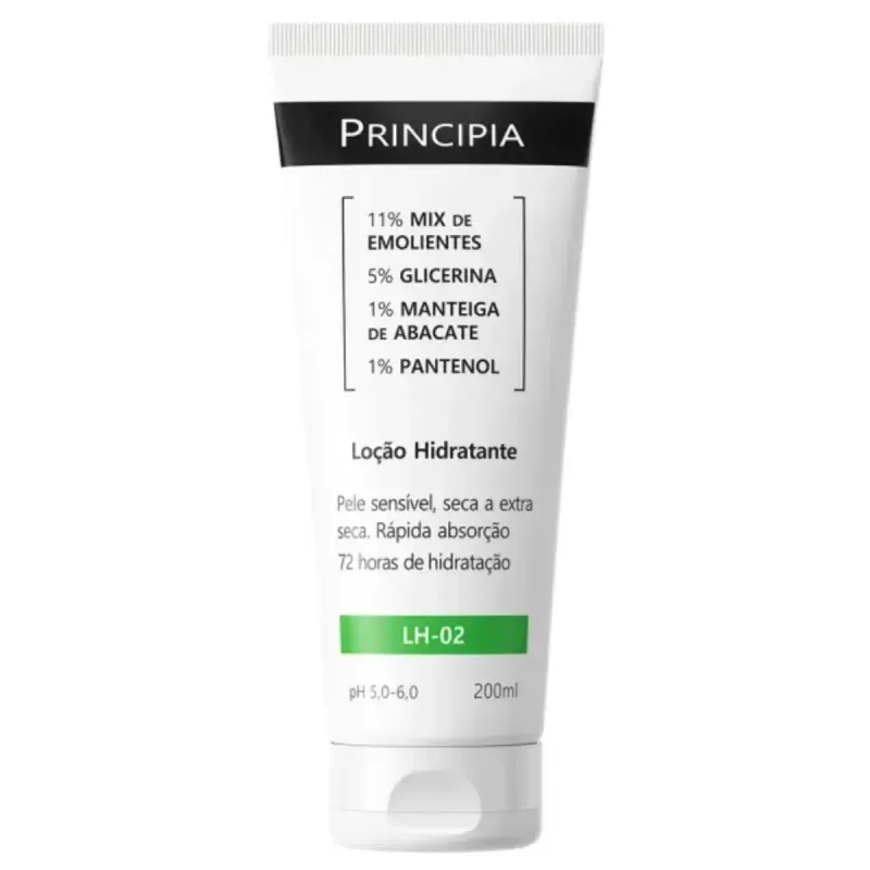 A Loção Hidratante Principia LH-02 200ml foi desenvolvida para promover hidratação intensa e restaurar a maciez da pele. Sua fórmula combina um mix de emolientes com glicerina, manteiga de abacate e pantenol, ingredientes reconhecidos por suas propriedades hidratantes, nutritivas e reparadoras.