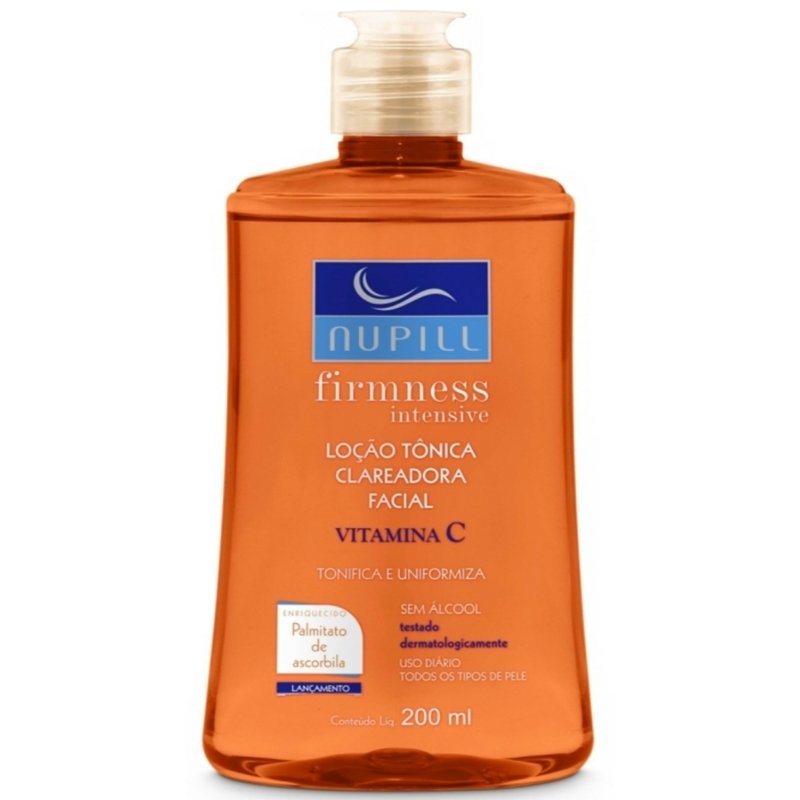 A Loção Tônica Facial Nupill Firmness Vitamina C 200ml é um tônico facial desenvolvido para complementar a rotina de cuidados com a pele. Sua fórmula contém Vitamina C estabilizada, conhecida pelo poder antioxidante, que auxilia no combate aos radicais livres e na prevenção do envelhecimento precoce, além de promover luminosidade e viço natural à pele.Para que serve?