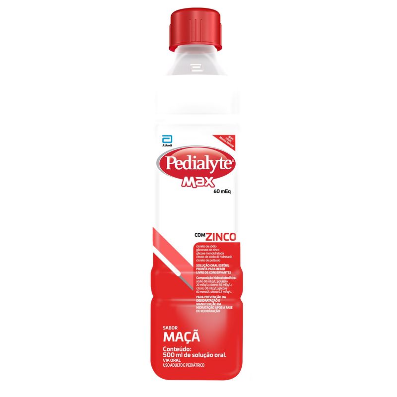 O Pedialyte Max Maçã 500ml é uma solução de reidratação oral pronta para consumo, desenvolvida pela Abbott Nutrition para prevenir e tratar a desidratação leve a moderada causada por diarreia, vômitos, febre, calor intenso ou atividade física prolongada. Sua fórmula contém sódio, potássio, cloreto, citrato e glicose, que promovem a reposição equilibrada de líquidos e eletrólitos perdidos, ajudando o organismo a recuperar o equilíbrio hídrico e energético. O sabor maçã garante ótima aceitação, tornando a hidratação mais agradável, especialmente para crianças.