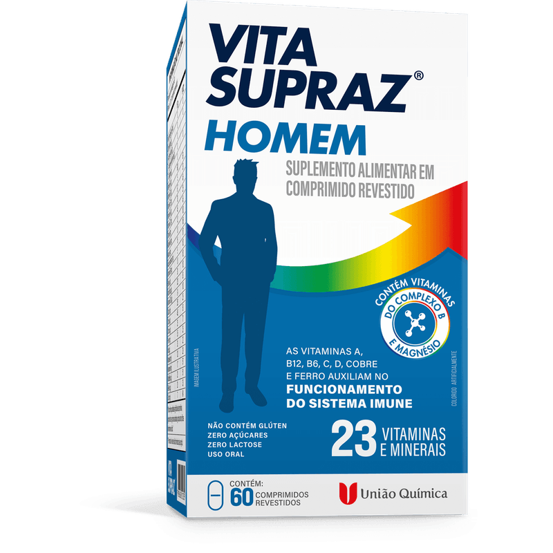 O Polivitamínico Vita SuprAZ Homem 60 Comprimidos é um suplemento nutricional especialmente formulado para atender às necessidades diárias de vitaminas e minerais do público masculino adulto. Sua composição equilibrada auxilia na manutenção da saúde geral, no fortalecimento do sistema imunológico e no suporte ao desempenho físico e mental.Para que serve?
