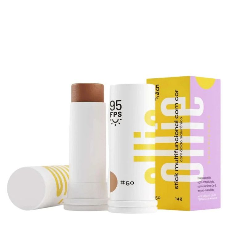O Protetor Solar em Bastão Com Cor da Ollie tem efeito de base, oferecendo cobertura média, longa duração e FPS 95 com FPUVA 40! Perfeito para todos os tipos de pele, incluindo as oleosas e maduras.