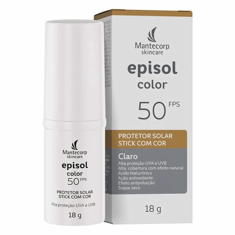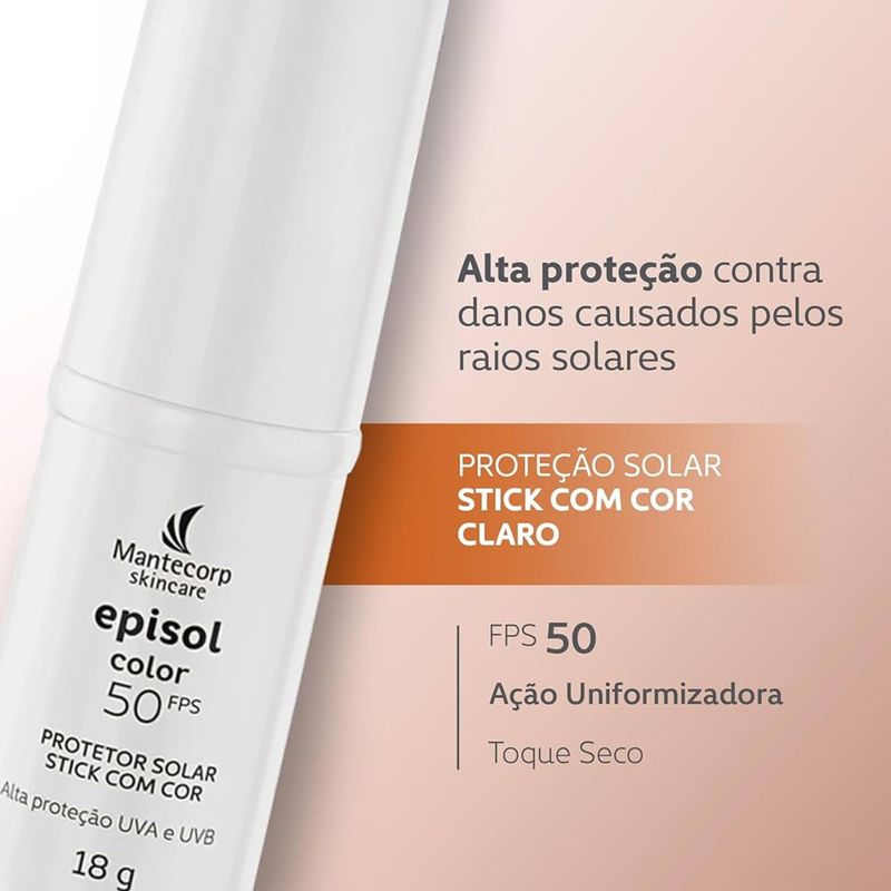 Protetor Solar Facial Episol Color Stick FPS 50 Claro 18g