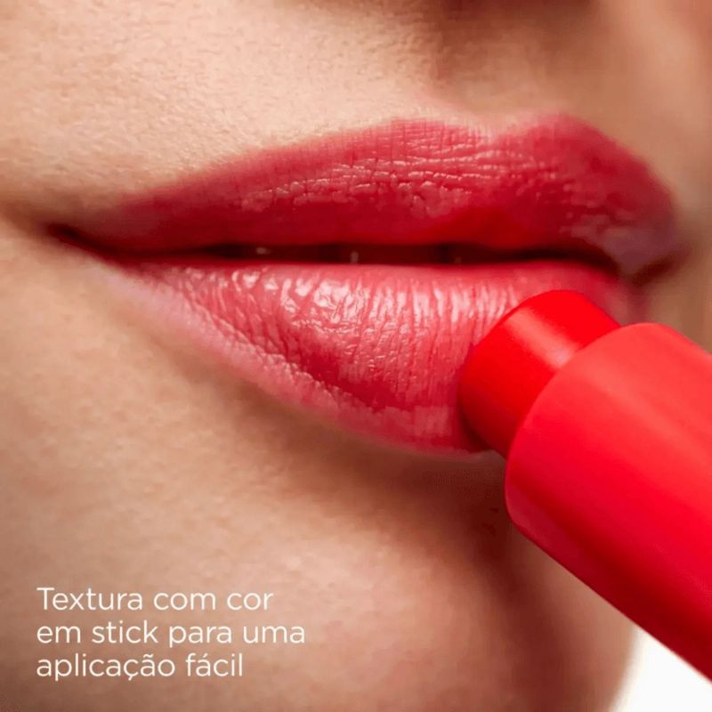 O que é? Reparador labial em formato stick de 4g para hidratação e cuidado diário dos lábios, na versão Red.