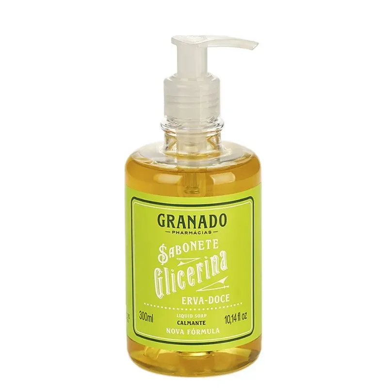 O Sabonete Líquido de Glicerina Granado Erva-Doce 300ml foi desenvolvido para oferecer limpeza suave, hidratação e bem-estar em cada uso. Formulado com base vegetal e glicerina natural, preserva a umidade da pele e evita o ressecamento, mantendo-a macia e saudável. Enriquecido com extrato natural de erva-doce, conhecido por suas propriedades calmantes e refrescantes, o produto proporciona uma sensação de frescor e leveza ideal para o uso diário. Seu perfume suave e herbal transforma o banho em um momento relaxante e revigorante.