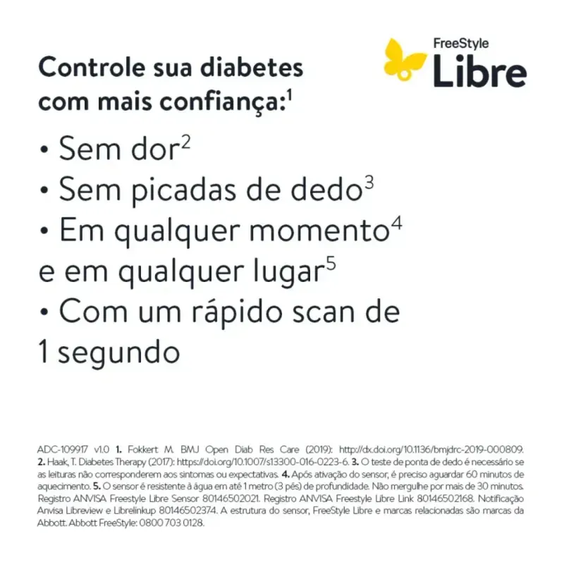 O sensor é pequeno, discreto e resistente à água, permitindo o uso durante atividades diárias, incluindo banho e exercícios físicos. A embalagem contém 1 sensor FreeStyle Libre Abbott, de aplicação indolor e simples.
