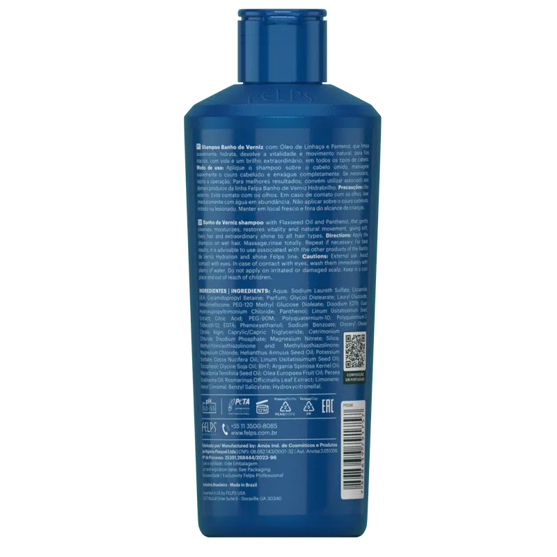 O Shampoo Brilho Intenso Banho de Verniz Felps Professional 250mL contém em sua fórmula D-pantenol, semente de linho e vitamina E. Shampoo Brilho Intenso Banho de Verniz Felps Professional 250mL limpa suavemente, recupera, hidrata e deixa um brilho extraordinário em TODOS OS TIPOS DE CABELO. Sua ação antioxidante promove vida e movimento natural aos fios.Modo de uso