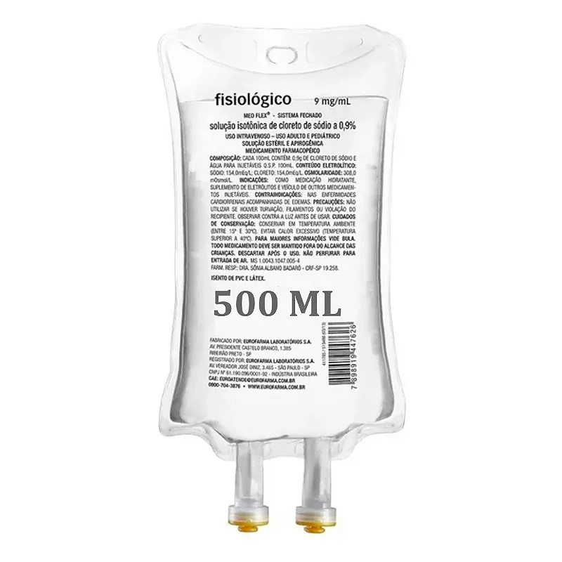 A Solução Injetável de Cloreto de Sódio 0,9% 500ml Beker é uma solução estéril e apirogênica utilizada por via intravenosa, em sistema fechado. Contém 9g de cloreto de sódio por litro (154mEq/L de sódio e cloreto), osmolaridade de 308mOsm/L e pH entre 4,5 e 7,0.Para que serve?