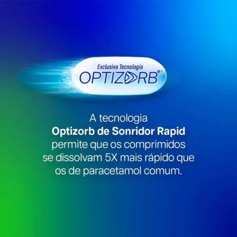 O Sonridor Rapid 500mg é um medicamento analgésico e antitérmico indicado para o alívio rápido de dores leves a moderadas e para a redução da febre. Seu princípio ativo, paracetamol, atua diretamente no sistema nervoso central, bloqueando os sinais de dor e ajudando no controle da temperatura corporal. Conta com a tecnologia Optizorb, que acelera a dissolução do comprimido, proporcionando um efeito mais rápido.