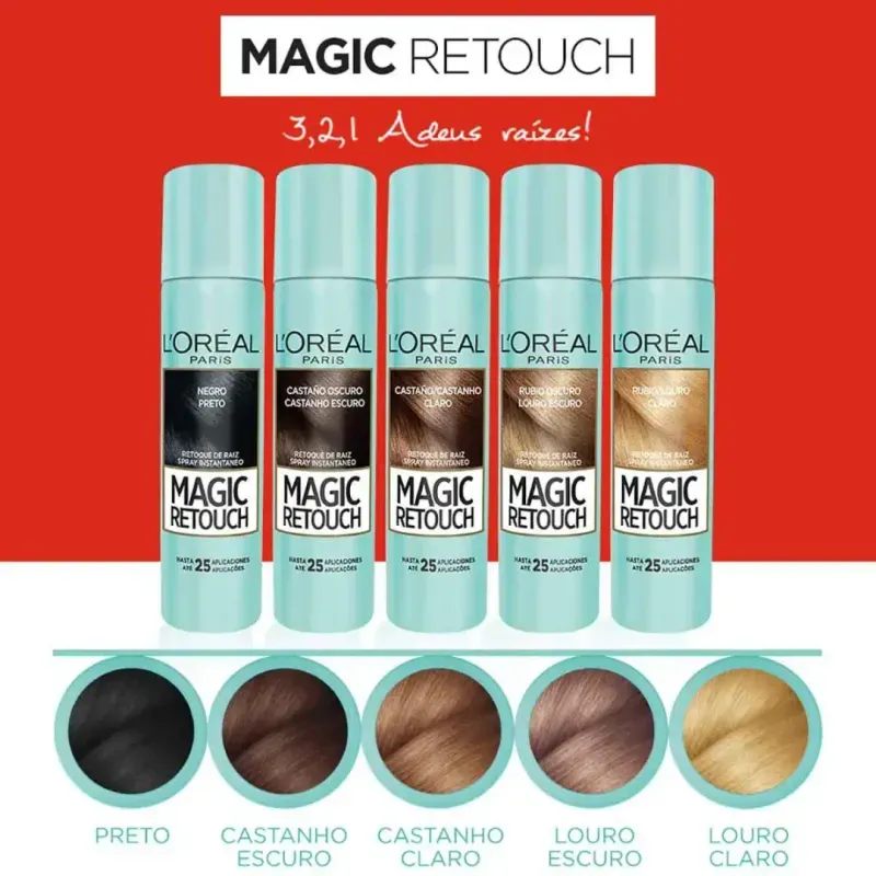 Spray Retoque De Raiz L'Oréal Magic Retouch Preto 75ml é um spray de cobertura temporária desenvolvido para disfarçar o crescimento da raiz e fios brancos entre uma coloração e outra. Com aplicação rápida e prática, ajuda a uniformizar a cor do cabelo no momento do uso, oferecendo um resultado que pode durar até a próxima lavagem. É uma solução conveniente para emergências, compromissos de última hora e para manter o visual alinhado sem precisar retocar a tintura imediatamente.